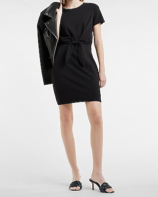 Round Neck Short Sleeve Tie Front Plain Mini T Shirt Dress Beautifulhalo Com